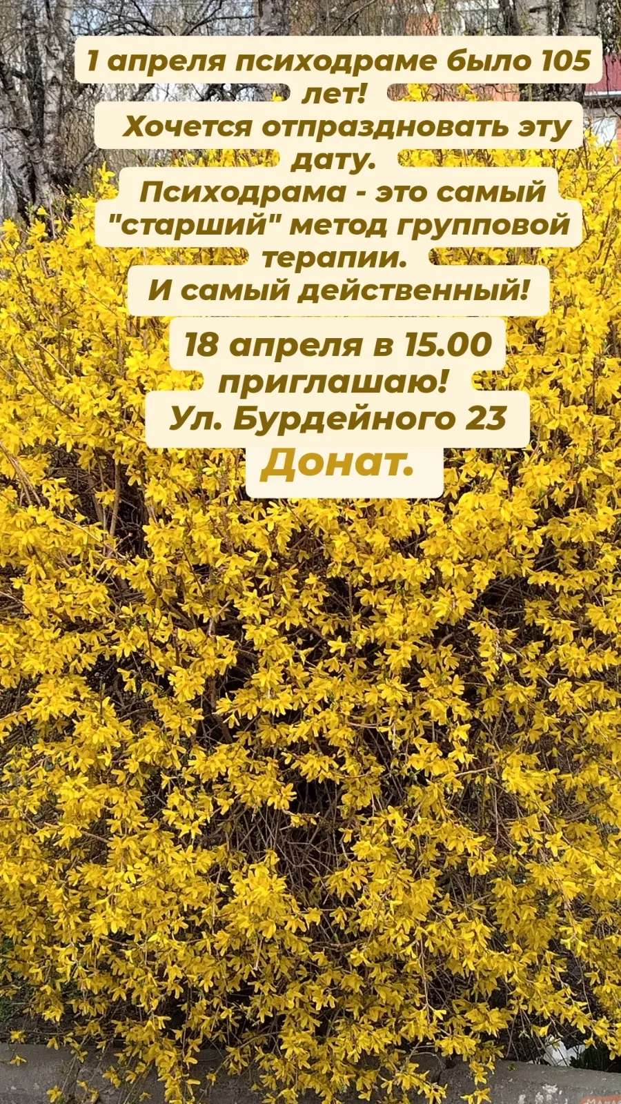 18 апреля в 15.00 приглашаю на очный психодраматический мастер-кла!