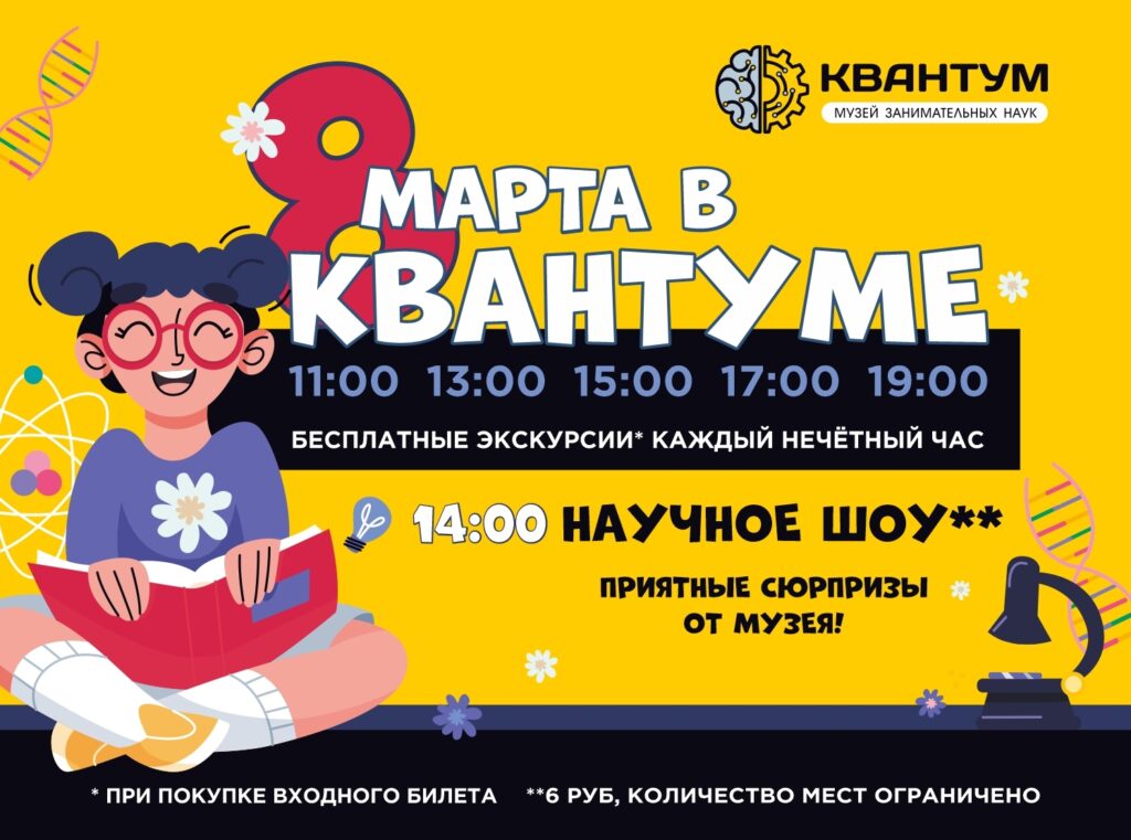 *Для посещения Научного шоу необходимо приобрести дополнительный билет — стоимость 6,0 руб.