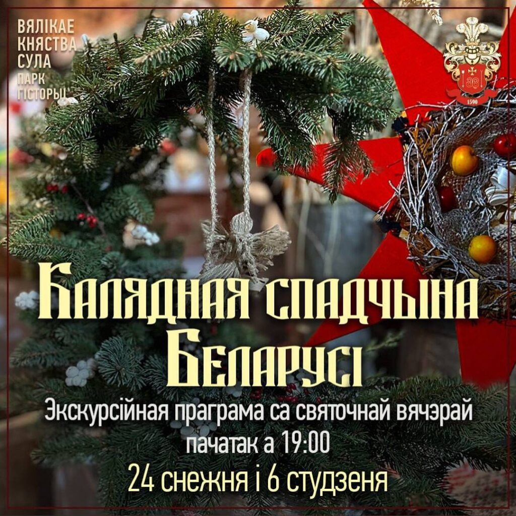 24 снежня і 6 студзеня ў 19:00 Вялікае Княства Сула раскрые для вас таямніцы каляднай спадчыны Беларусі, дзе мы запрашаем вас стаць актыўнымі ўдзельнікамі анімацыйнай экскурсійнай праграмы з чароўнымі персанажамі!