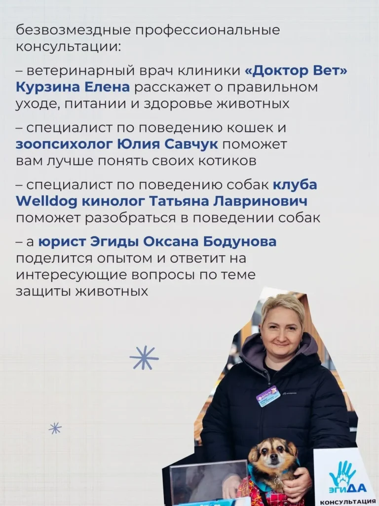 Это будет тёплая встреча с животными, которые ищут заботу, внимание и своего человека. Здесь вы сможете помочь хвостикам, понять их лучше, познакомиться и, возможно, встретить того самого верного друга.
