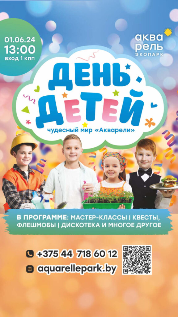 Экопарк «Акварель» приглашает всех детей и их родителей на праздник «Чудесный мир Акварели», посвящённый международному Дню защиты детей.