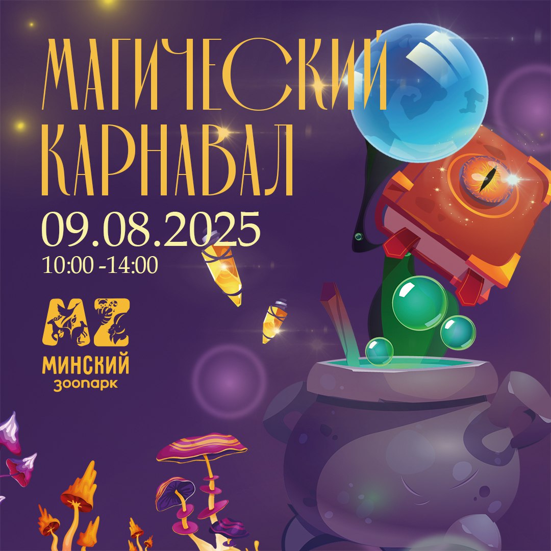 9 августа 2025 года не пропустите самое волшебное и незабываемое мероприятие в честь дня рождения Минского зоопарка – «Магический карнавал»!