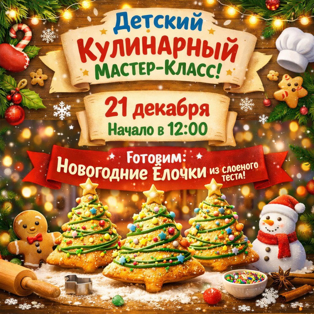 Приглашаем маленьких поваров на уютный и вкусный новогодний мастер-класс ✨ Будем готовить новогодние ёлочки из слоёного теста — красиво, просто и очень вкусно!