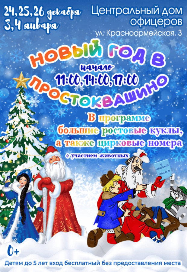 Дед Мороз и Снегурочка подарят всем зрителям цирковое представление с участием дрессированных животных. Ребят ждёт ещё один сюрприз — хороводы, игры и танцы вокруг новогодней красавицы-ёлки.