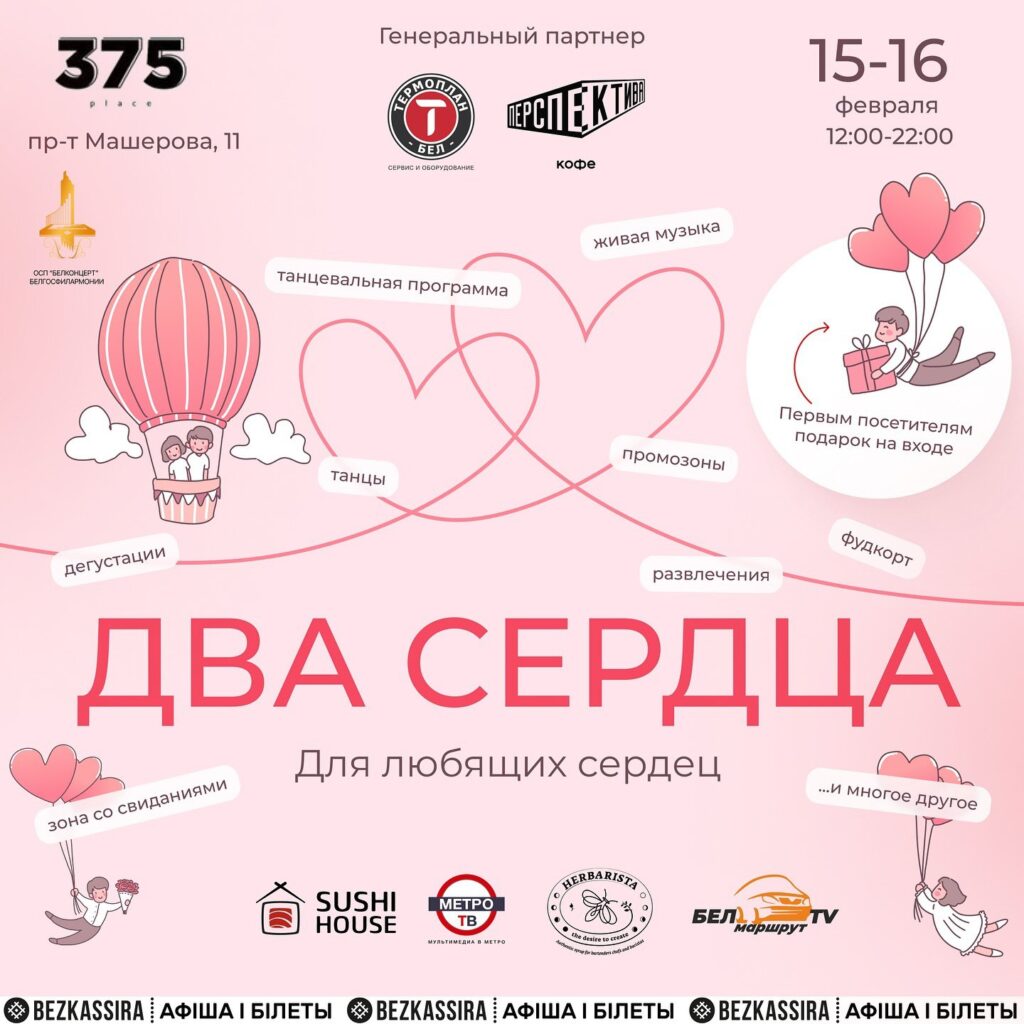 «Два сердца» — мероприятие для влюбленных, любимых и желающих быть любимыми. Желающие соединить свои сердца или поддержать тепло между собой и в семье могут посетить наше мероприятие 15 и 16 февраля (2 дня) в пространстве «375»