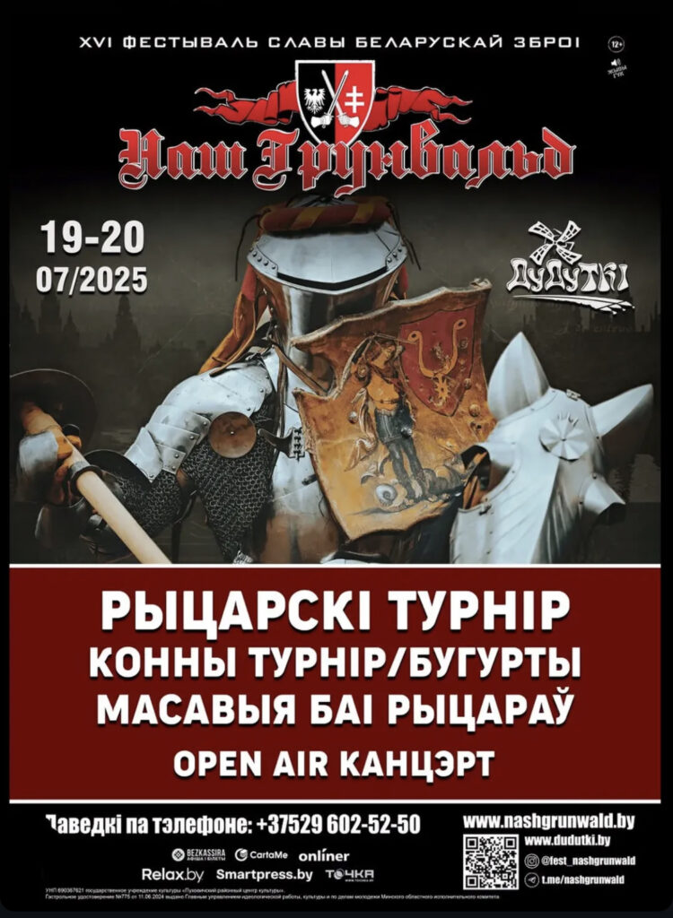 Друзья, готовьте доспехи и мечи (или просто хорошее настроение)! 19-20 июля 2025 года под Минском, в музее-скансене «Дудутки», развернется грандиозное действо — XVI Международный фестиваль исторической реконструкции «Наш Грюнвальд»!