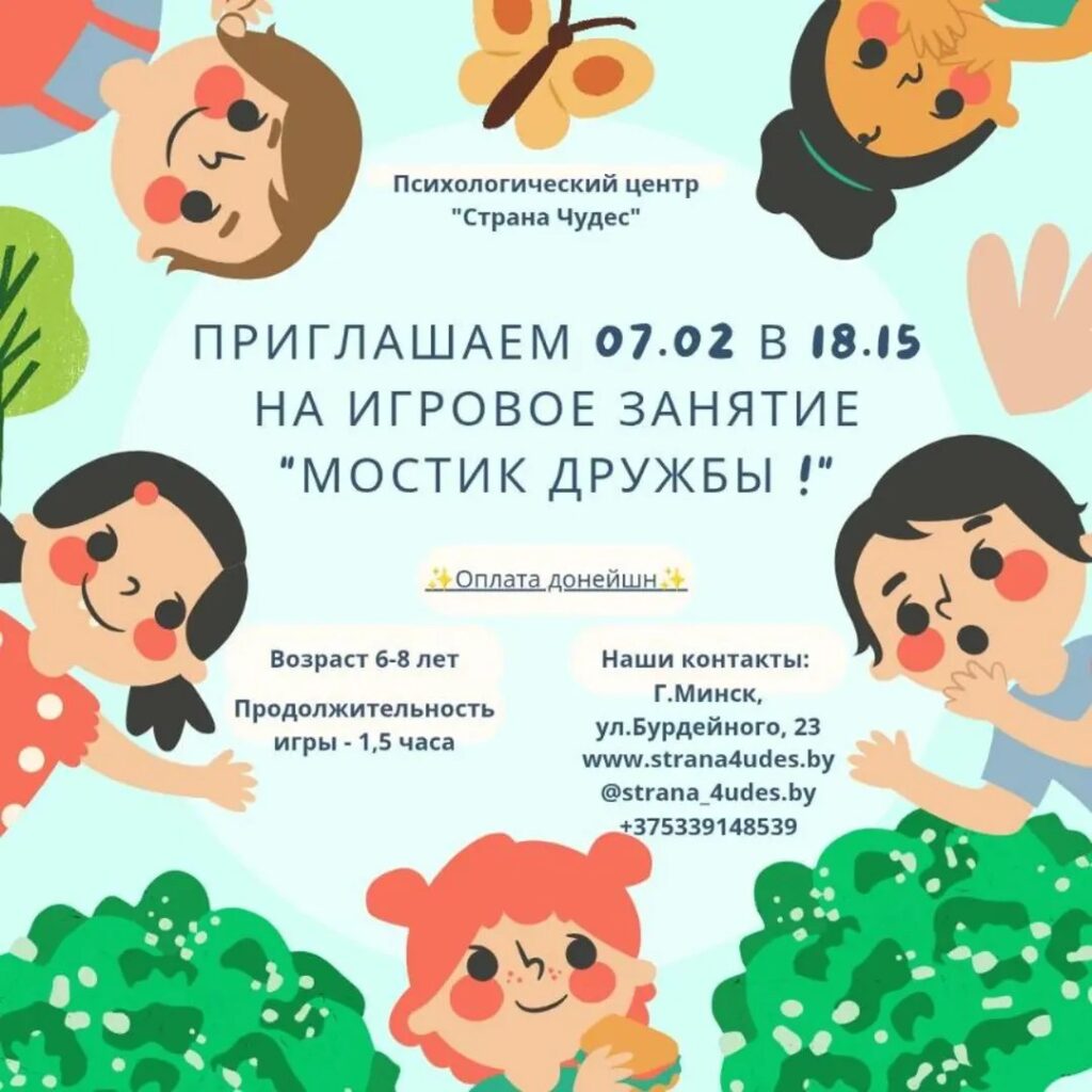 Приглашаем детей 6-8 лет принять участие в игровом занятии «Мостик дружбы!»