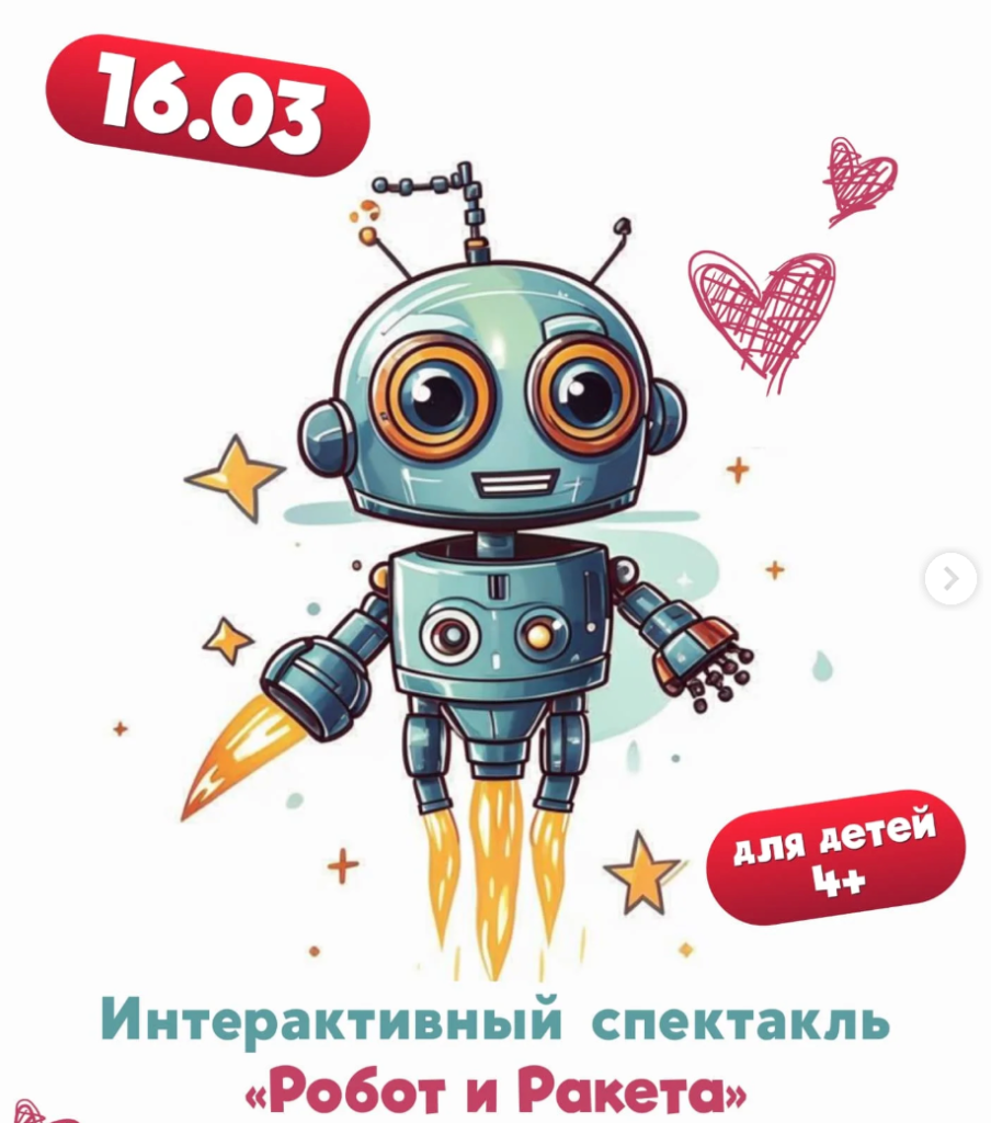 ПРИГЛАШАЕМ на интерактивный спектакль «Робот и Ракета»🚀🤖 – волшебная история о дружбе от театра «ЛЕВ И ПТИЧКА»