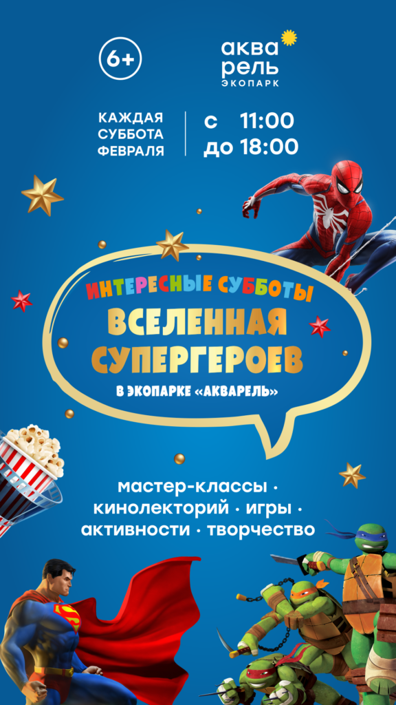 Поэтому экопарк «Акварель» начинает цикл мероприятий, посвященный разным супергероям и завершит этот цикл классным и ярким мероприятием – Вечеринка Супергероев!