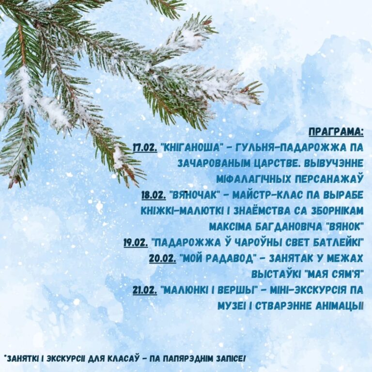 Заняткі і экскурсіі для класаў — па папярэднім запісе!