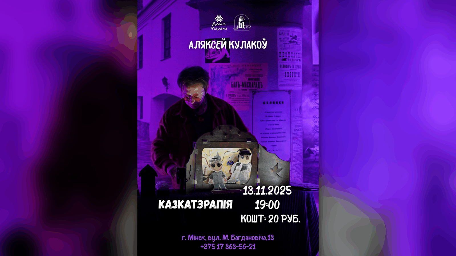 З дапамогай японскага папяровага тэатра – камішыбай, паказваць і расказваць будзе Аляксей Кулакоў – актор тэатра-батлейкі “Дом з марамі”, паэт, пісьменнік і сцэнарыст.