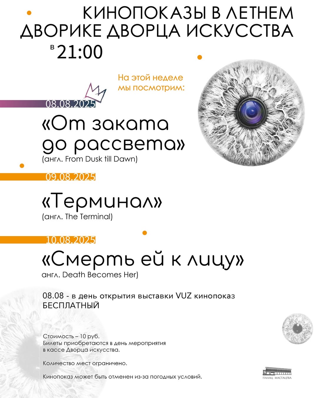 Кинопаказы в летнем дворике Дворца искусства. На этой неделе мы посмотрим:
