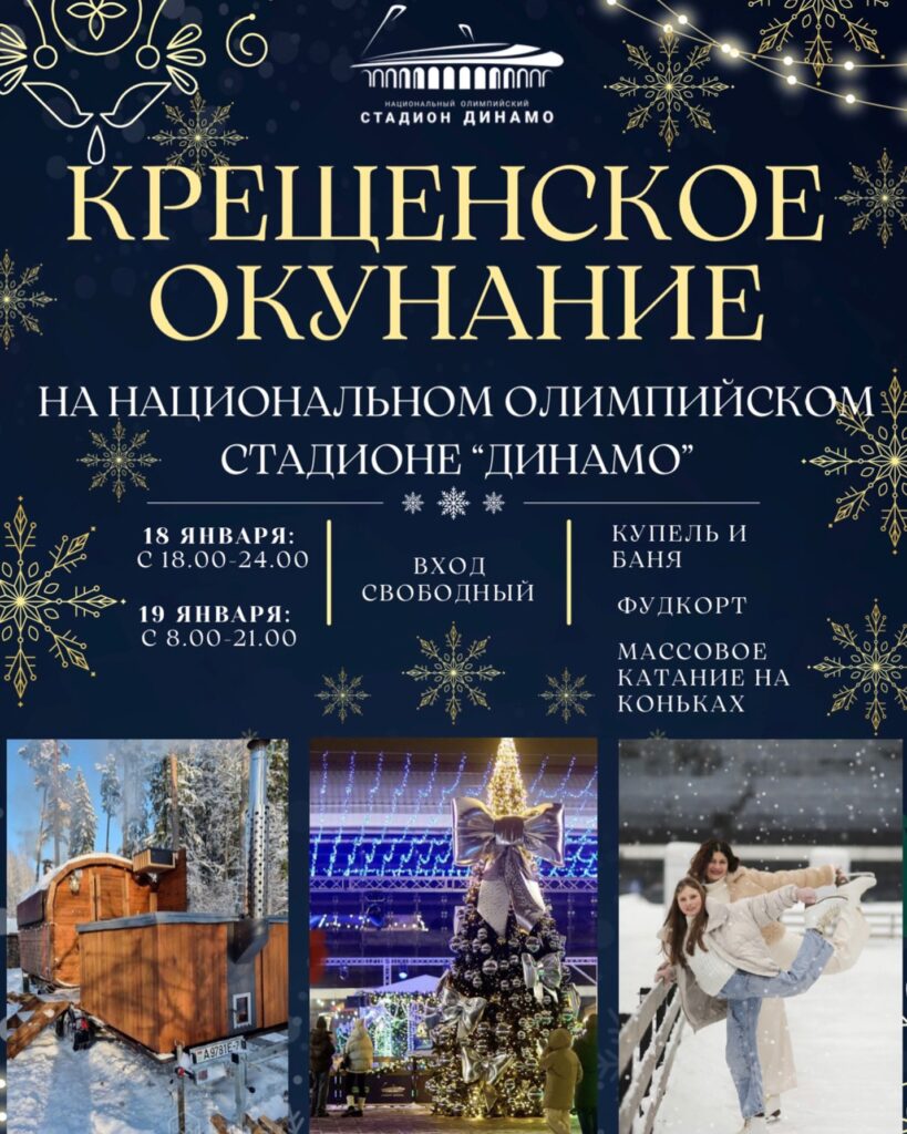 18, 19 ЯНВАРЯ НА НАЦИОНАЛЬНОМ ОЛИМПИЙСКОМ СТАДИОНЕ «ДИНАМО» БУДЕТ ПРОХОДИТЬ УНИКАЛЬНОЕ МЕРОПРИЯТИЕ «КРЕЩЕНСКОЕ ОКУНАНИЕ».