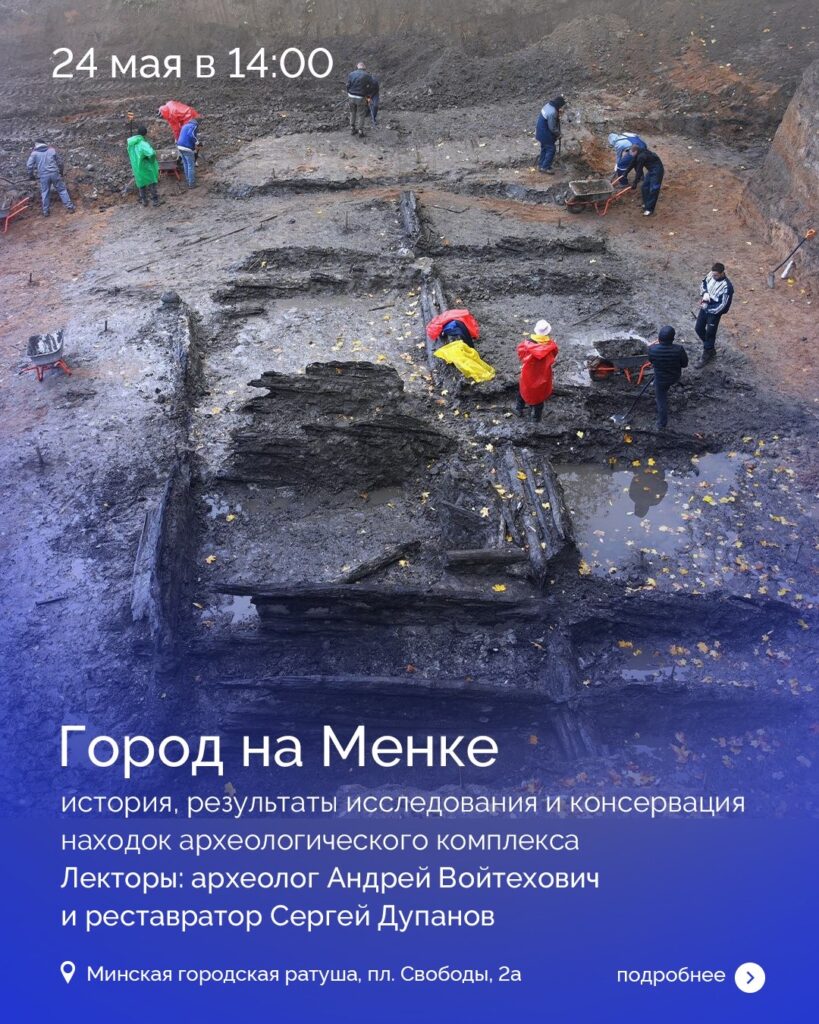 Музей истории города Минска приглашает в Минскую городскую ратушу на лекцию «Раскопки города на Менке: история, результаты исследования и консервация находок». Лекторами выступят – Андрей Вячеславович Войтехович, археолог, кандидат исторических наук, заведующий отделом археологии средних веков и нового времени Института истории НАН Беларуси и Сергей Александрович Дупанов, главный инженер ГОДО «Транс-Центр».