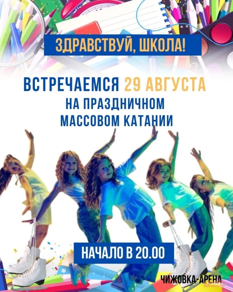 Встречайте школьный сезон ярко и весело! Перед началом учебы приглашаем всех на массовое катание на Чижовка-Арене!