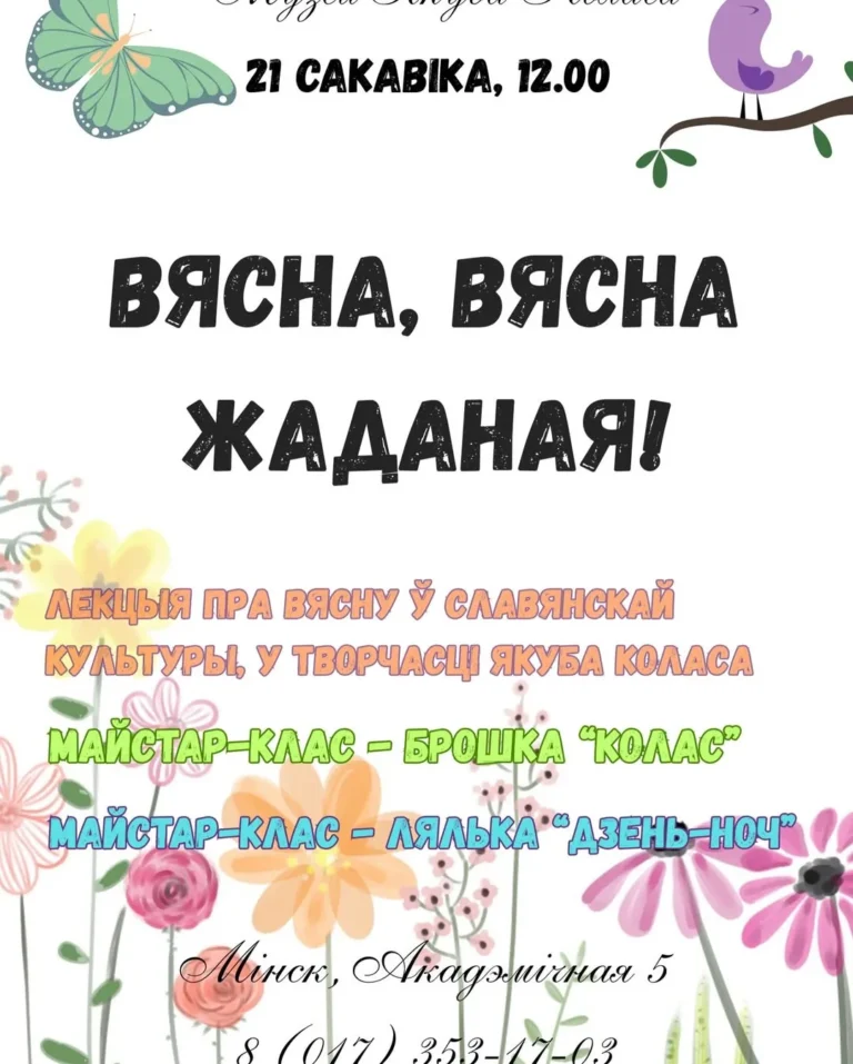Музей Якуба Коласа запрашае ўсіх аматараў беларускай культуры, творчасці, паэзіі разам сустрэць дзень веснавога раўнадзенства і цікава правесці час.