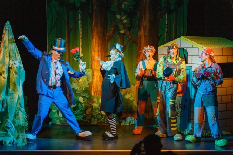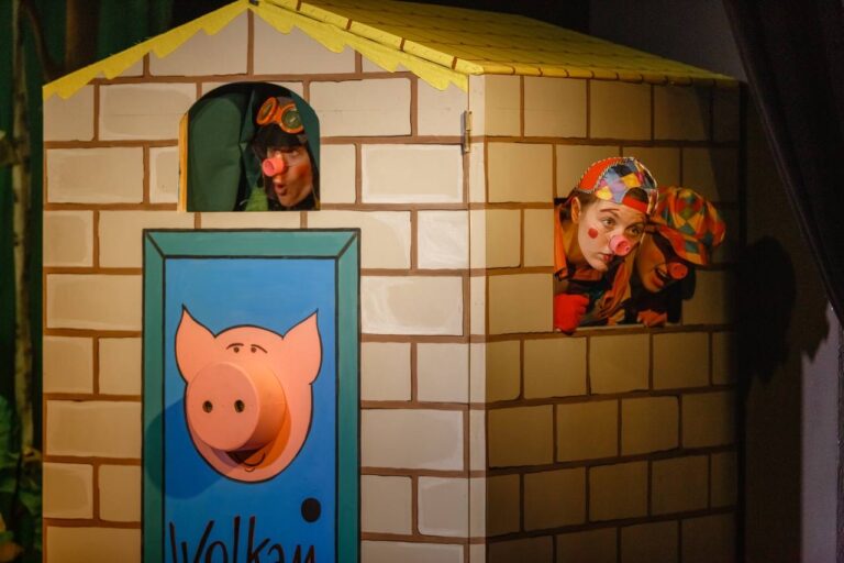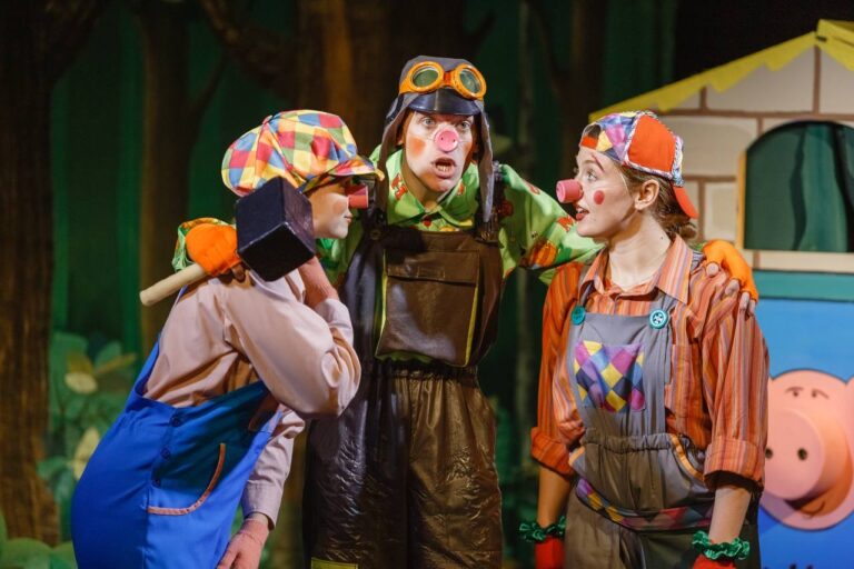 Пёстрая, неунывающая Сорока принесла в лес весть о том, что появился у них голодный Волк, которого надо бояться. Но простодушные озорные Поросята не очень испугались, только на всякий случай решили соорудить себе убежища, куда бы можно было убежать. И вот появился Волк! Но, несмотря на голод и дурную славу о нём, он оказался совсем не злым, а элегантным, доверчивым и одиноким. И сразу стало ясно, что Поросятки сумеют его обхитрить и не пострадают от него. А ещё в эту ситуацию вписалась Сорока – любительница потанцевать, поговорить со всеми, включая зрителей, и научить, как надо себя вести в разных жизненных ситуациях. И случилось так, что Волк, которому очень хотелось найти друзей, с которыми можно поиграть и даже потанцевать, понял, кто эти друзья!