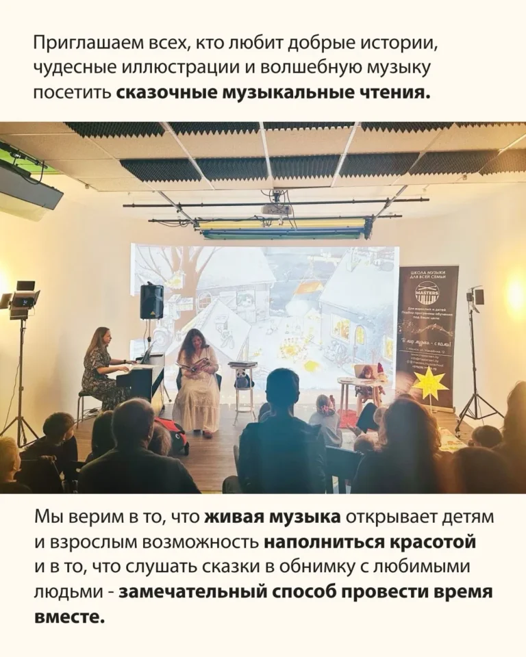 Мы верим в то, что живая музыка открывает детям и взрослым возможность наполниться красотой и в то, что слушать сказки в обнимку с любимыми людьми — замечательный способ провести время вместе.