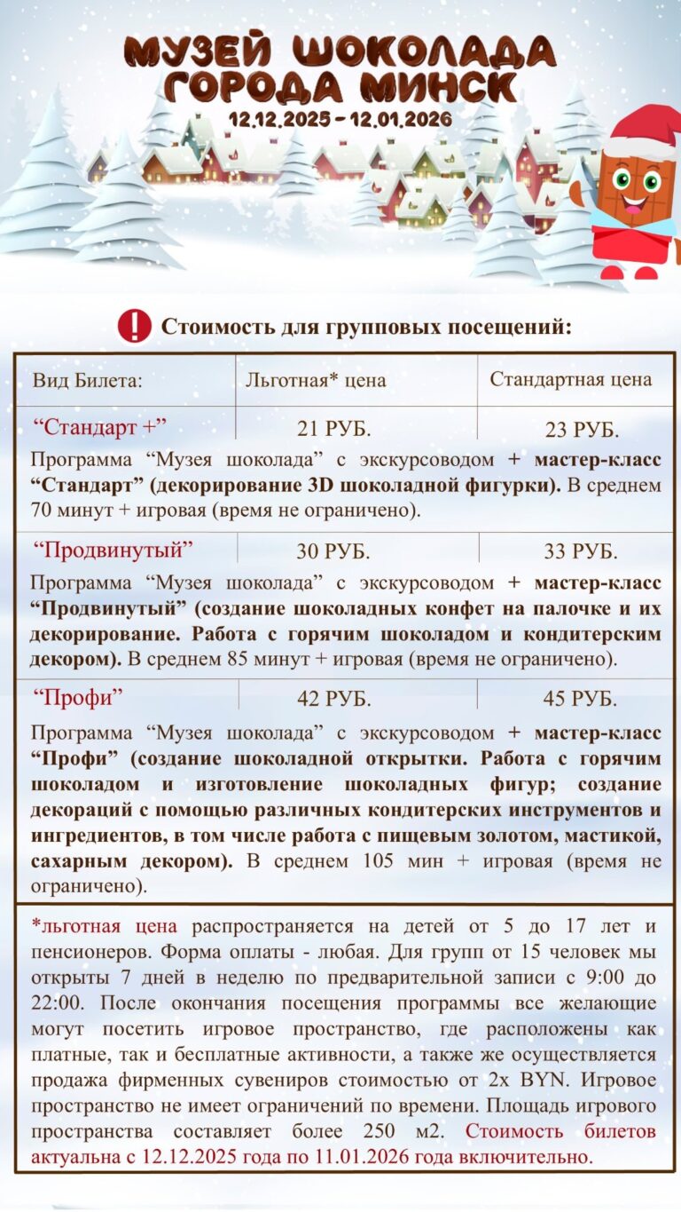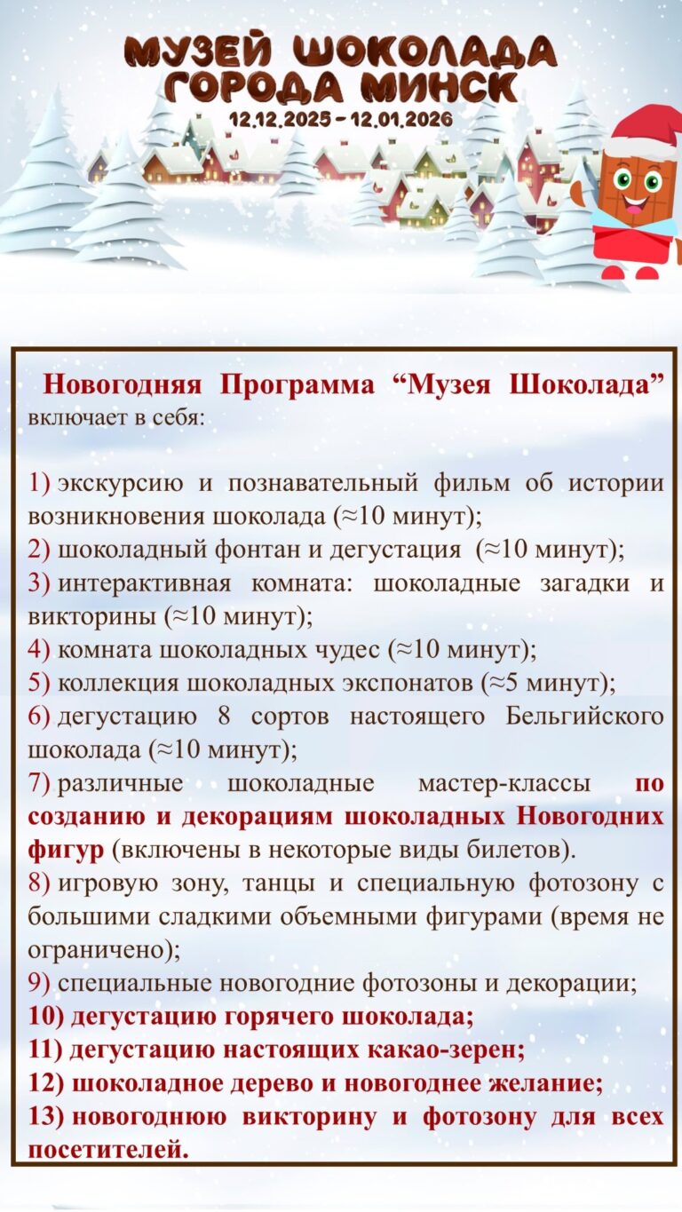 7) различные шоколадные мастер-классы по созданию и декорациям шоколадных Новогодних фигур (включены в некоторые виды билетов);