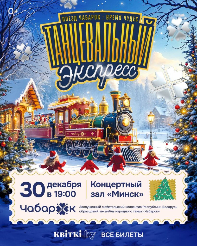 В детской новогодней сказке «Танцевальный экспресс», в которой примут участие детские хореографические коллективы, вас ждут удивительные встречи со сказочными героями – снеговиками, гномиками, белым медведем и другими персонажами новогоднего танцевального путешествия.