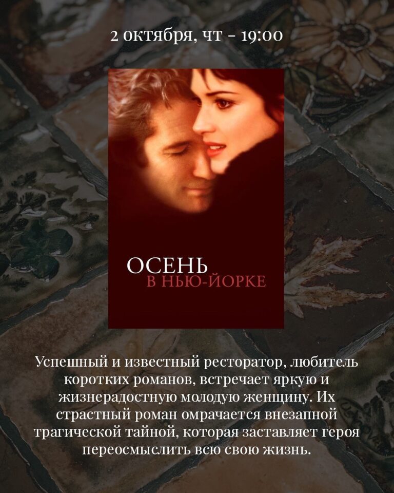 19:00 — Осень в Нью-Йорке (2000), драма, мелодрама, 12+