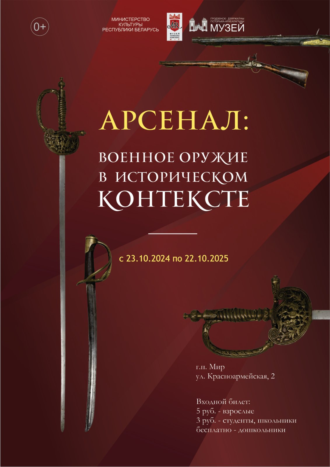 В выставочном зале Северного корпуса Мирского замка состоится открытие совместного проекта Гродненского государственного историко-археологического музея и музея «Замковый комплекс «Мир» – временной экспозиции «Арсенал: военное оружие в историческом контексте».