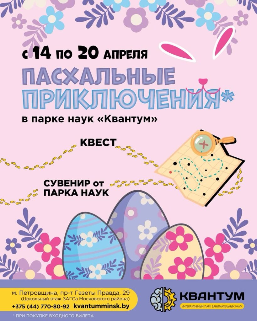 Пасха — время чудес, и мы приготовили для вас особенный квест, полный научных открытий и сюрпризов! Присоединяйтесь к захватывающему научному приключению в нашем парке! Вы сможете окунуться в мир загадок, экспериментов и веселья.