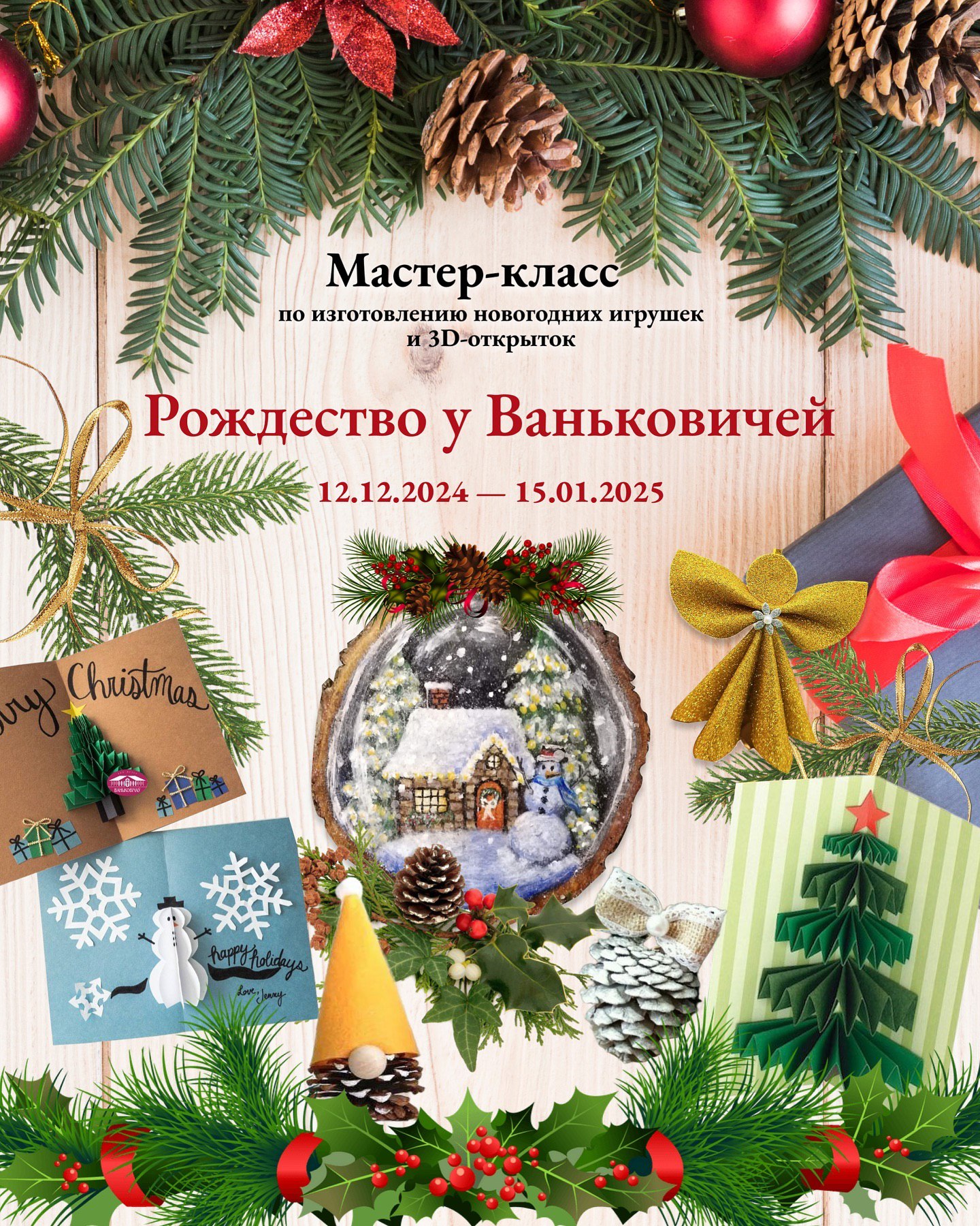 С 12.12.2024 по 15.01.2025 в музее «Дом Ваньковичей. Культура и искусство первой половины XIX в.» будет проходить тематическая программа «Рождество у Ваньковичей» с мастер-классом по изготовлению новогодних игрушек и 3D-открыток.