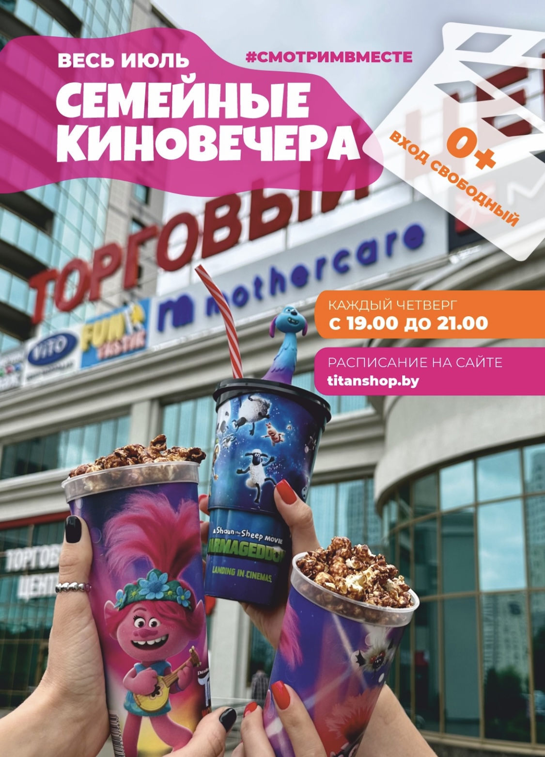 Весь июль по четвергам на площадке перед торговым центром Титан будут проходить семейные киновечера.