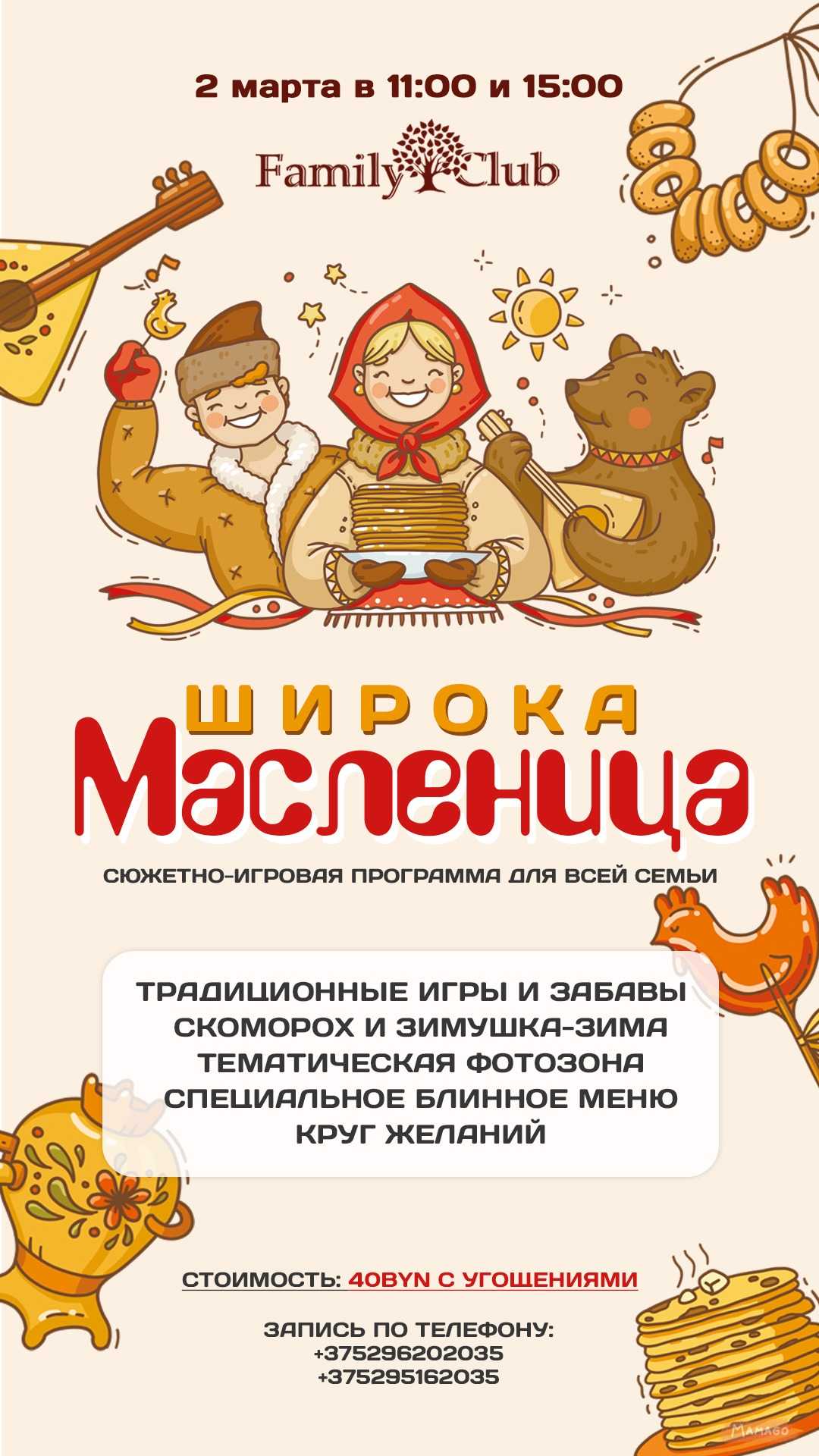 Скоморох вместе с ребятами будет звать «Весну», но «Зимушка Зима», устроит свои ледяные козни и не будет меняться местами с Весной. Поэтому участникам предстоит справится со снежными испытаниями. Пройти ледяной лабиринт, отгадать все загадки, повторить масленичные танцы, разбудить Медведя-помощника, нажарить блинов в весёлой эстафете… и наконец встретить Весну-Красну. А главное загадь сокровенное желание на масленичном круге.