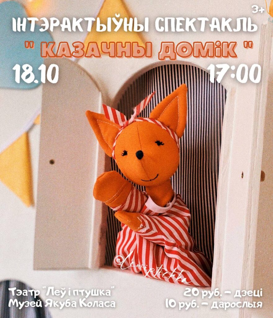 У межах тыдня бацькоўскай любові тэатр «Леў і Птушка» запрашае маленькіх сяброў у захапляльнае падарожжа ў «Казачны домік» 18 кастрычніка ў 17:00