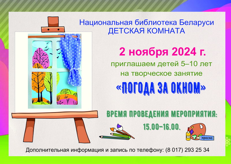 2 ноября детская комната приглашает детей 5–10 лет на творческое занятие «Погода за окном».