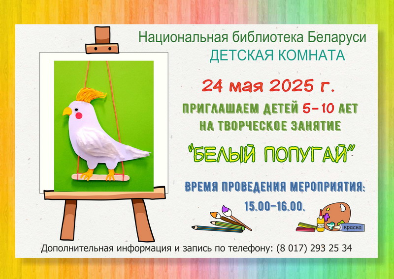 24 мая детская комната приглашает детей 5–10 лет на творческое занятие «Белый попугай».
