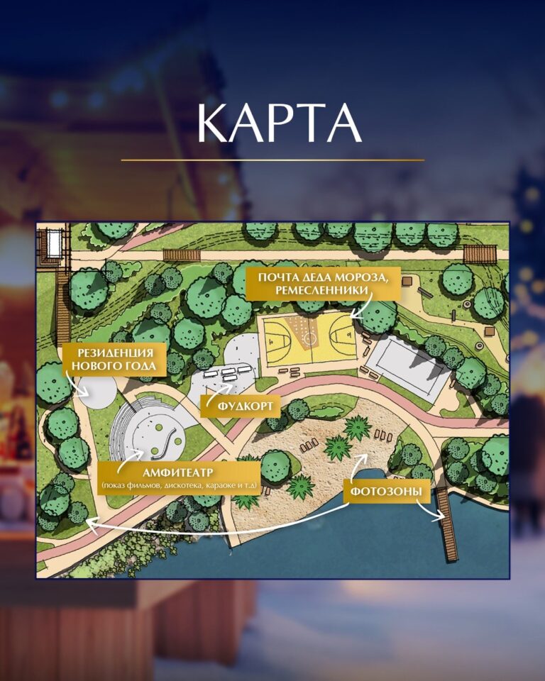 Весь парк празднично украшен и наполнен атмосферой уюта и ожидания чуда — идеальное место для семейных прогулок, встреч с друзьями и красивых новогодних кадров.