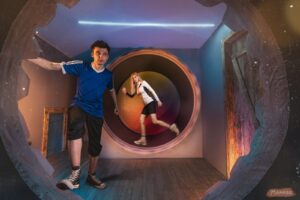 День рождения в «Квантум» — это не просто весело, познавательно, увлекательно и ооочень научно. Это полное погружение в мир великих открытий! 1000 квадратных метров, разделенных на тематические зоны: аэродинамика, энергия и магнетизм, механика, биология, оптика, комната Теслы, черная комната и Музей человека. А для wow-эффекта — зеркальный лабиринт. Юным Эйнштейнам и Ньютонам точно зайдет такой вариант, а фееричный микс науки и веселья запомнится надолго.