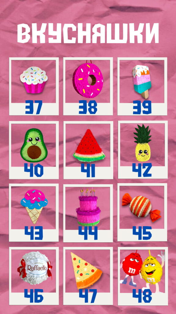 Пиньята — это точно незабываемый финал праздника! Дети их обожают: чтобы добраться до секретного наполнения, нужно хорошенько «дубасить» пиньяту специальной битой, что и вызывает дикий восторг и невероятные эмоции. Ваши дети такое точно не забудут, а уж какие фоточки будут, ух!