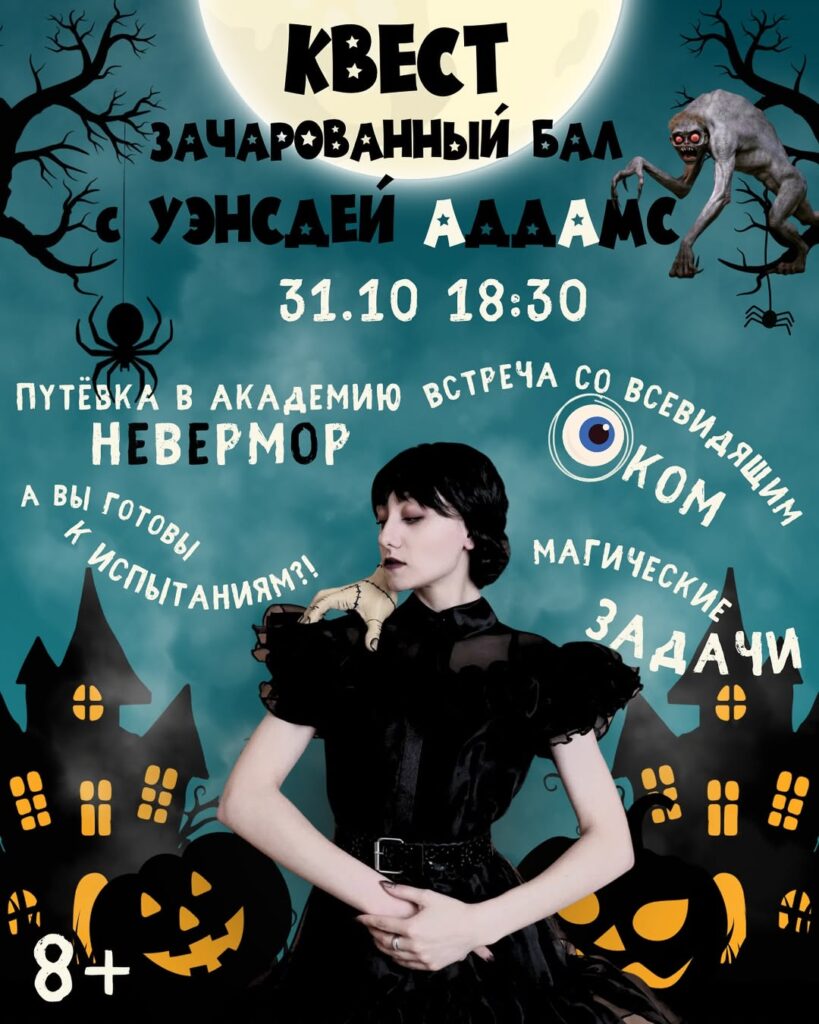 Зачарованный бал с Уэнсдей (пространство «Про момент», 8+) — квест-игра для тех, кто не боится встретиться лицом к лицу с вездесущим злом;