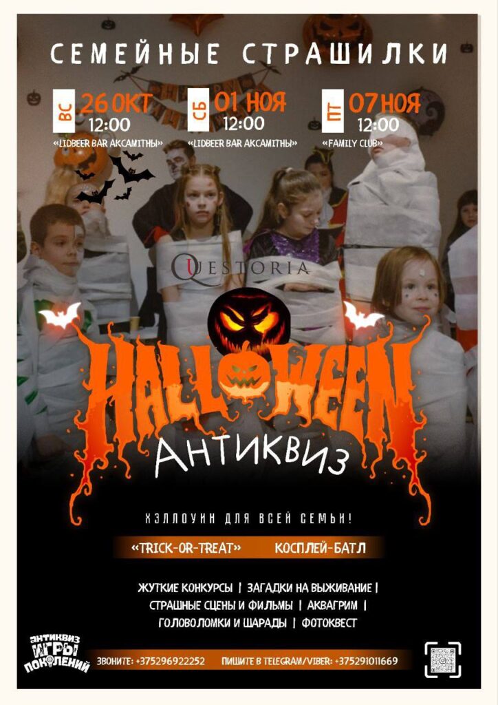Антиквиз-вечеринка «Halloween» (01.11 бар «Лидбир Аксамитны», 07.11 кафе «Family Club», 7+) — это ужжжасно классный формат для семейного отдыха;