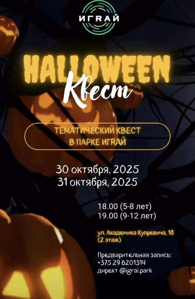 Хэллоуин-квест (парк развлечений «ИГRАЙ», 5+) — страшно-веселые приключения для детей в активном формате.