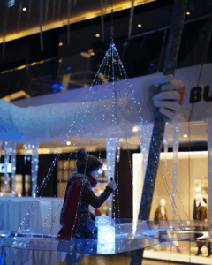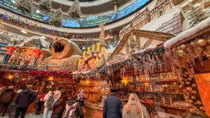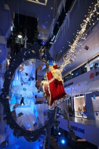 Как всегда неприлично необычно и красиво! Можно долго разглядывать детали и восхищаться креативом декораторов — это и есть главная причина приехать сюда. В этом году здесь гигантский кабинет Санты!