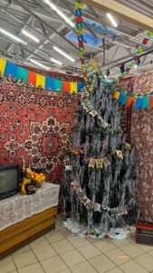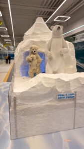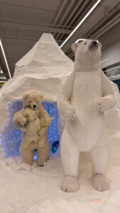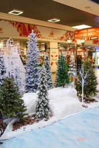 Здесь точно самая милейшая фотозона нашей подборки: рождество белых мишек😍. Трогательный ничего не найдете точно! Заодно можно купить живую елку и красоты для нее — выбор новогодних товаров в «Материке» нереально большой.