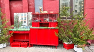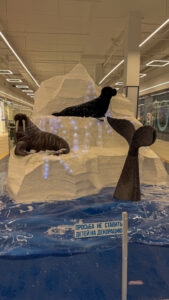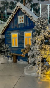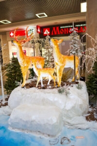 Еще одна милейшая фотозона расположена на 3 этаже железнодорожного вокзала. В этом году это зимняя сказка — лесная опушка с животными. Локация просто волшебная. А сколько деталей, которые можно разглядывать!