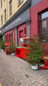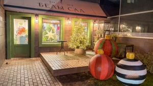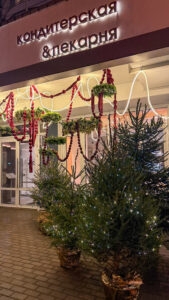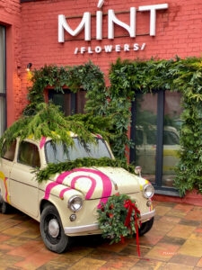 Взять : большие банты, пушистую ель, волшебные огоньки и машину в карнавальной маске, а. Аккуратно смешать — вуаля! Роскошество возле цветочного магазина «Mint» готово. А еще здесь проводят мастер-классы для взрослых и детей.
