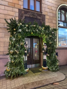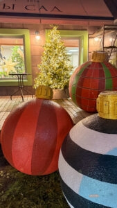 Щелкунчики под Новый год — беспроигрышный вариант! А если добавить к ним больших елочных шаров и чуть магии гирлянд, получите прекрасную фотозону! Кстати, совсем рядом палочка-выручалочка всех мам — «Las Legas» (пр-т Победителей, 133А) и новая игровая «Мама я сам. Ферма». И «Шедевры вкуса», где можно попробовать панакоту в виде капибары.