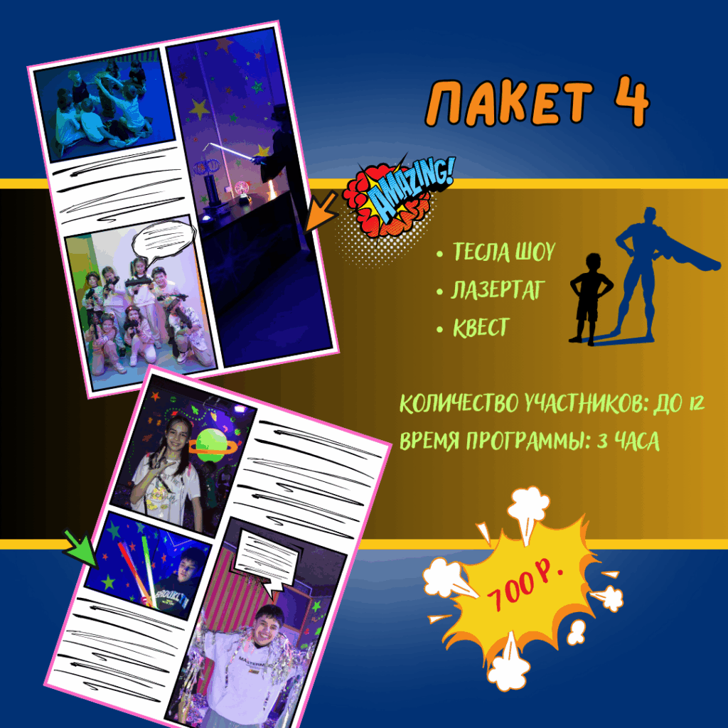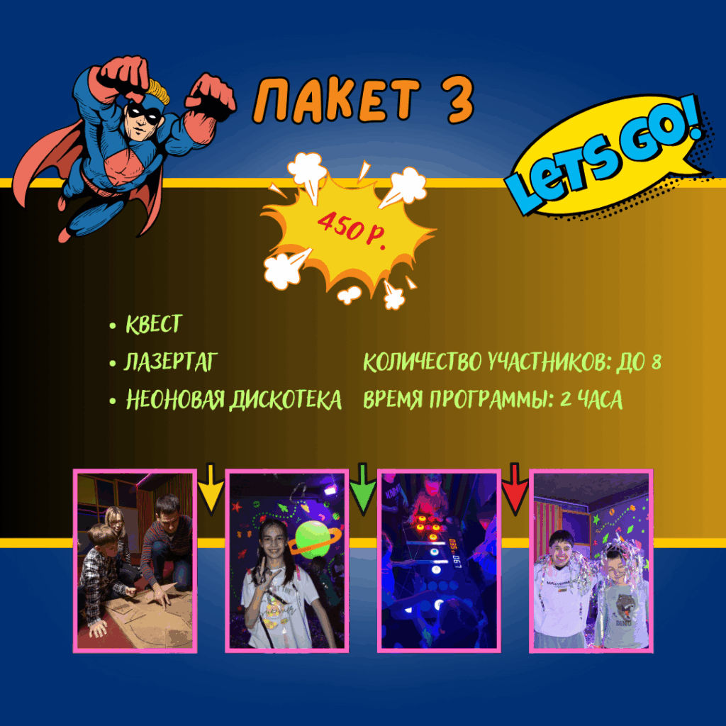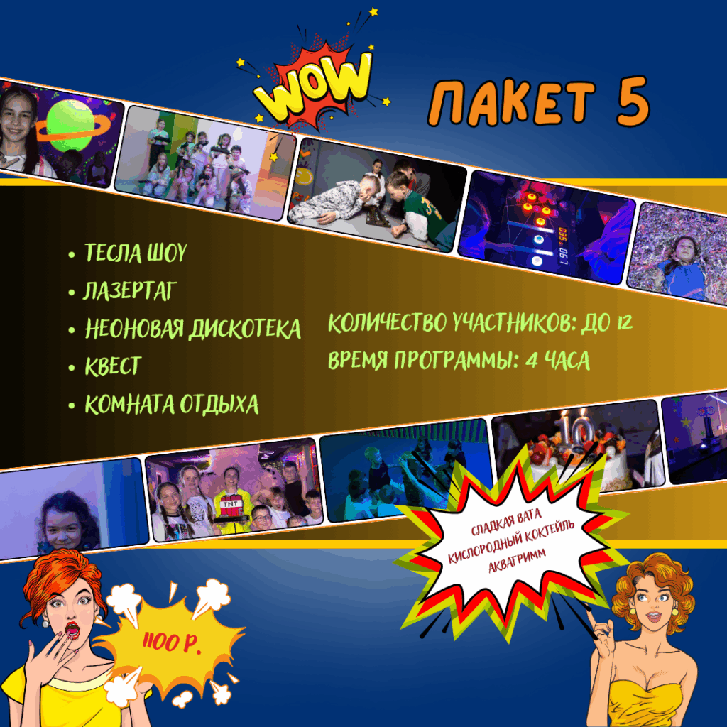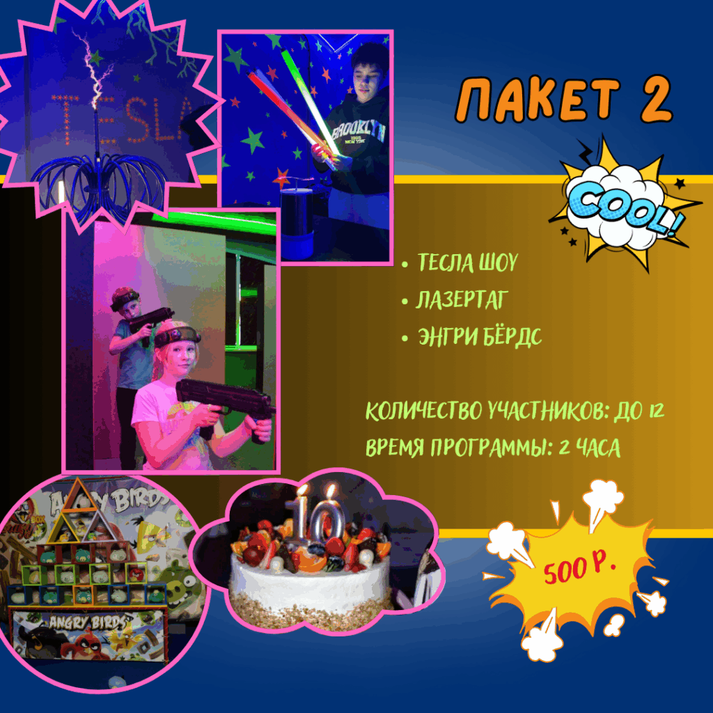 Хэппи Парк — это идеальное место для семейного отдыха, где каждый найдет развлечение по душе! Здесь вас ждут уникальные квесты, погружающие в захватывающие приключения, а также впечатляющее Тесла шоу, которое не оставит равнодушным никого. На неоновой дискотеке можно зажигать под энергичную музыку, а лазертаг в неоновом лабиринте подарит незабываемые эмоции и азартные схватки. После активных развлечений можно отдохнуть в уютных комнатах, созданных для комфортного общения и расслабления. Хэппи Парк — это море позитивных впечатлений для всей семьи!