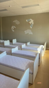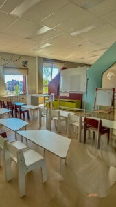 Просторные зоны: группы и спальни площадью около 90 кв.м., большой спортзал (свыше 112 кв.м.), музыкальный зал (91,3 кв.м.).
