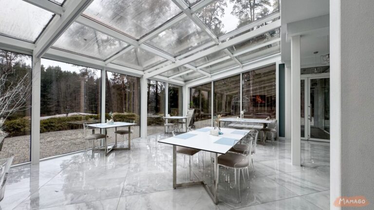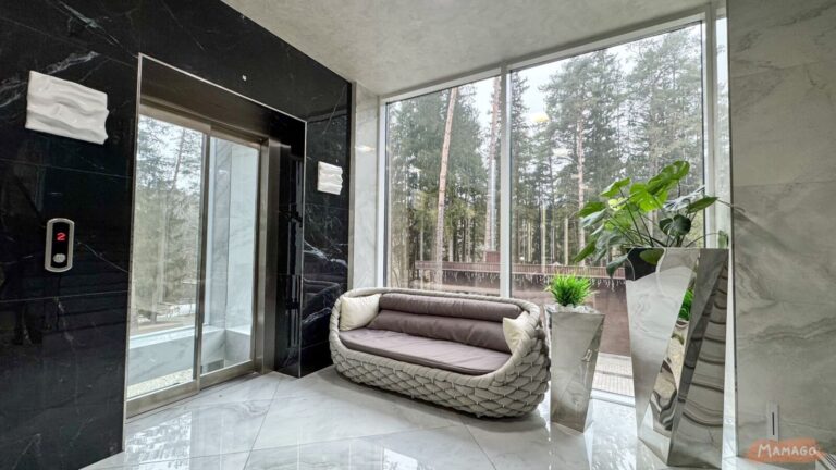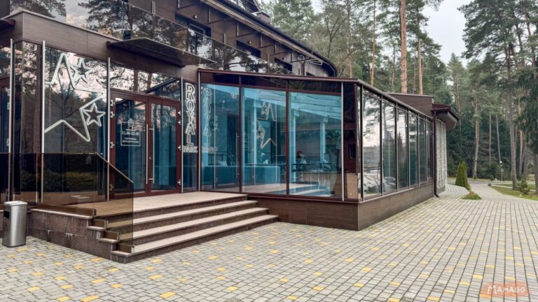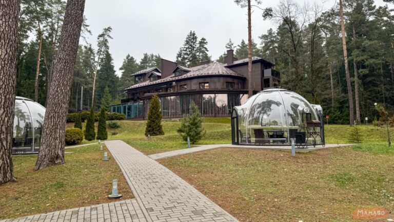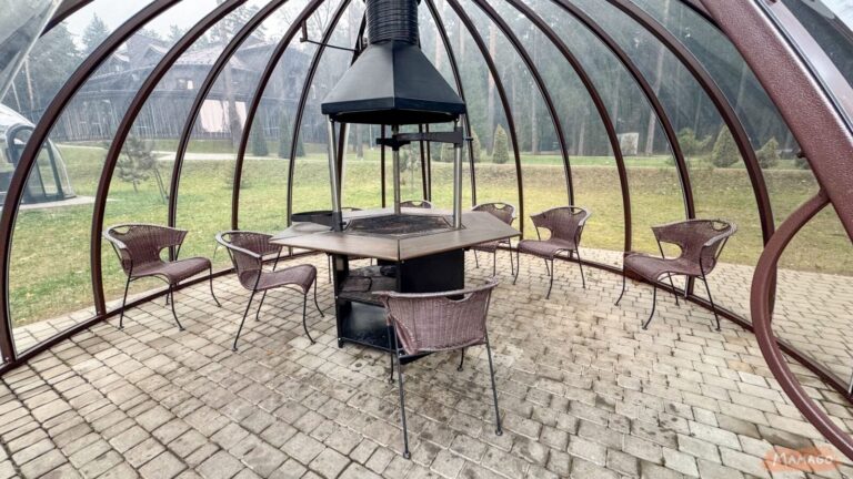 Отель расположен возле водоема в сосновом лесу. Купаться нельзя, но на территории есть детская площадка и прозрачные беседки для барбекюшных посиделок (за дополнительную плату).