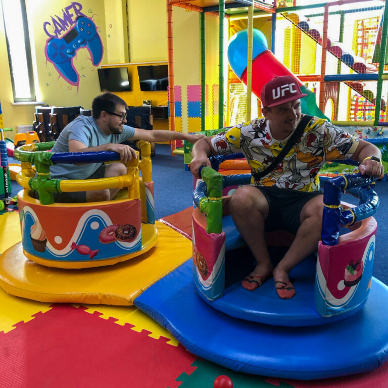 Пока дети бесятся, взрослые могут сходить в кино, СПА или устроить шопинг.: сухой бассейн, горки, лабиринт, столик с Lego, зона с развивашками и игрушками.