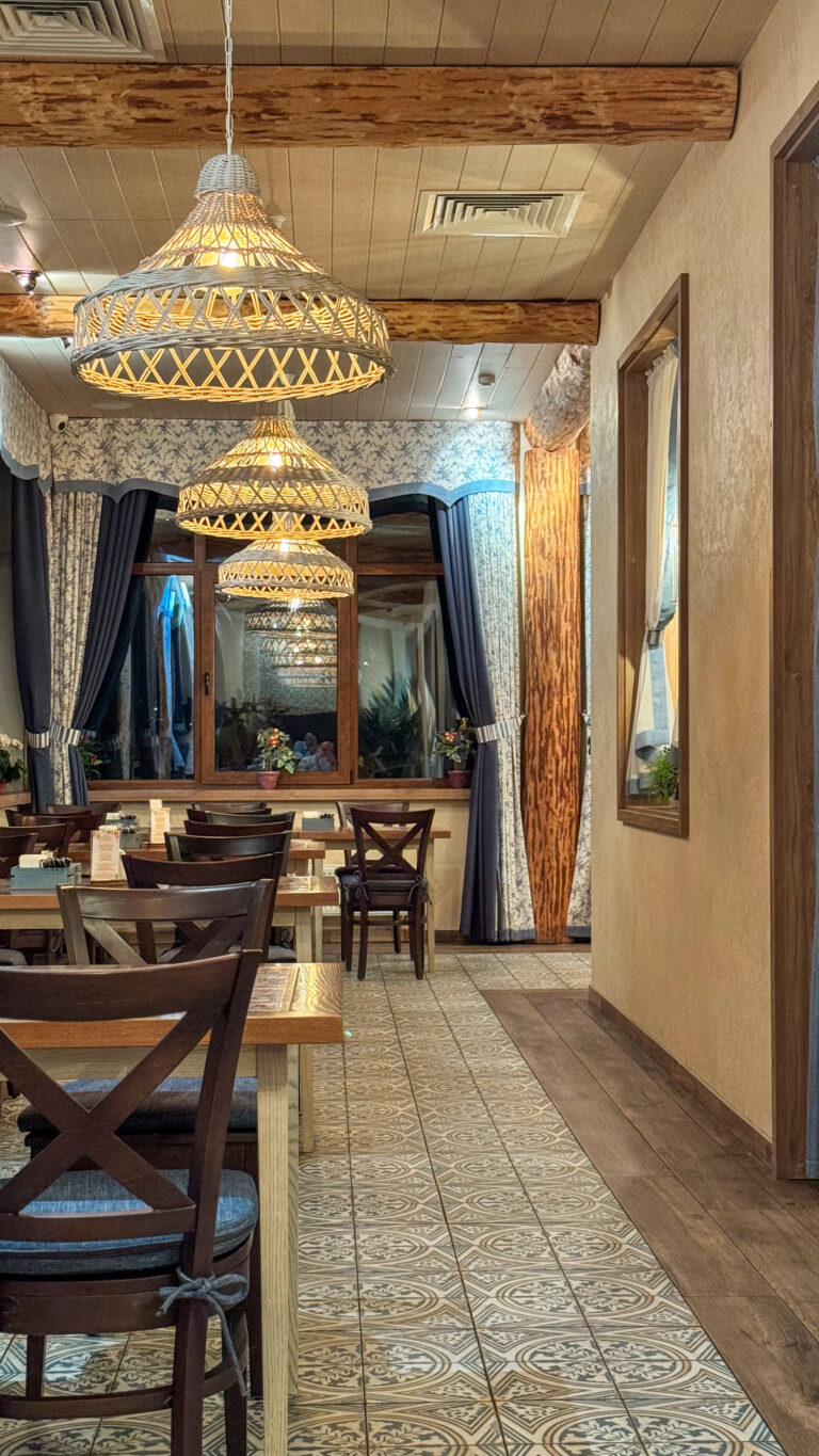 К ресторану удобно пройтись пешочком по Невскому проспекту, рассматривая архитектуру и обязательно заглянув в магазин «Купцов Елиссевых» — тут можно и вкусностей питерских купить, и полюбоваться интерьерами, и послушать фортепиано. Нам интересно было попасть именно в «Пуси-лебеди», чтоб попробовать питерский формат «Всё по 350 руб». Тут таких заведений много и все заманивают к себе, но коренная петербурженка блогер Алёна Глод посоветовала нам именно этот адресок. Небольшой сюрпризик, о котором мы узнали уже за столиком — по выходным цена за блюдо вырастает с 350 до 400 руб (~15 BYN), что тоже вполне отлично (но интересно, что об этом нигде ни слова:)) Мы заказали том-ям, тартар, стейк-салат, салат с печеными баклажанами и стейк. Порции отличные и очень-очень вкусно! Особенно баклажаны покорили. Ищу рецепт. Интерьер довольно необычный, такой дикий фьюжн, но уже пора бы сделать ремонт и заменить столы.