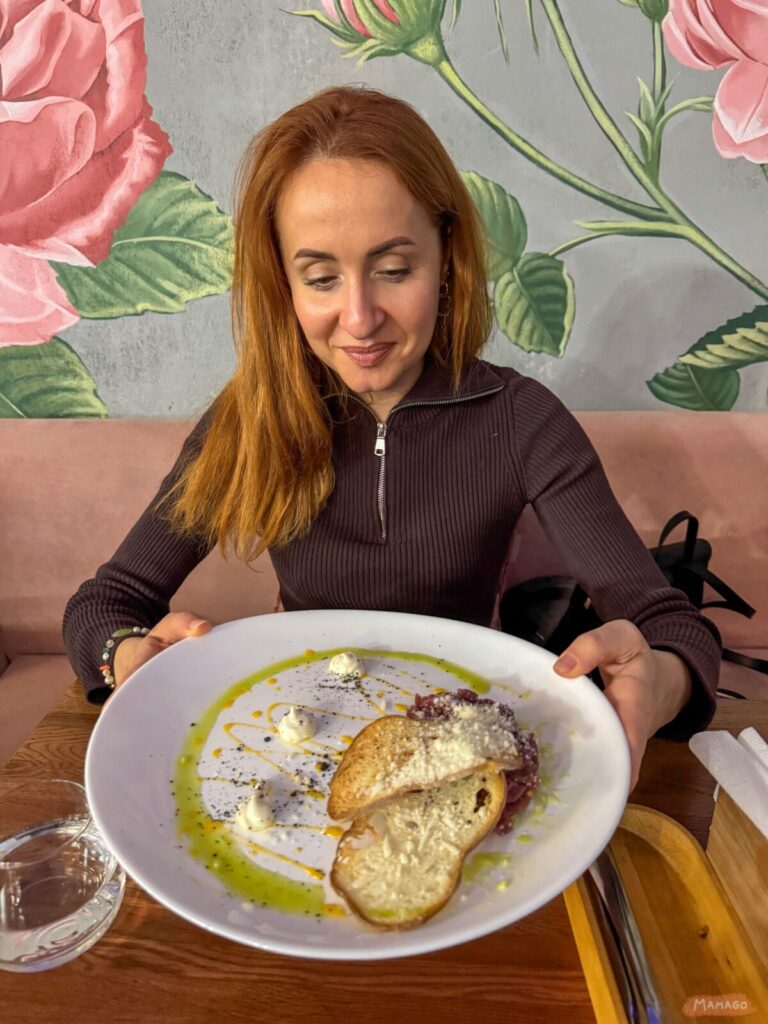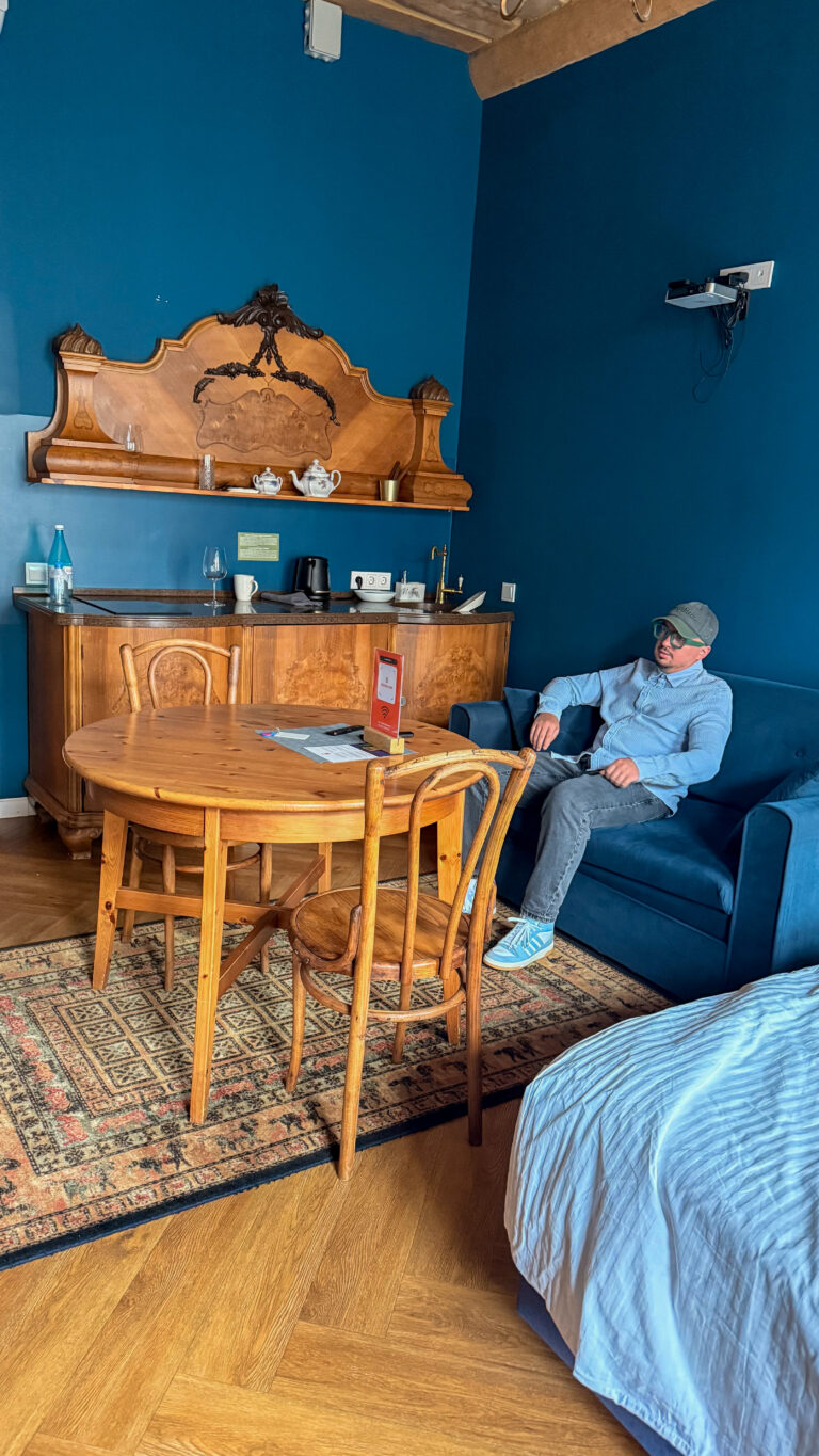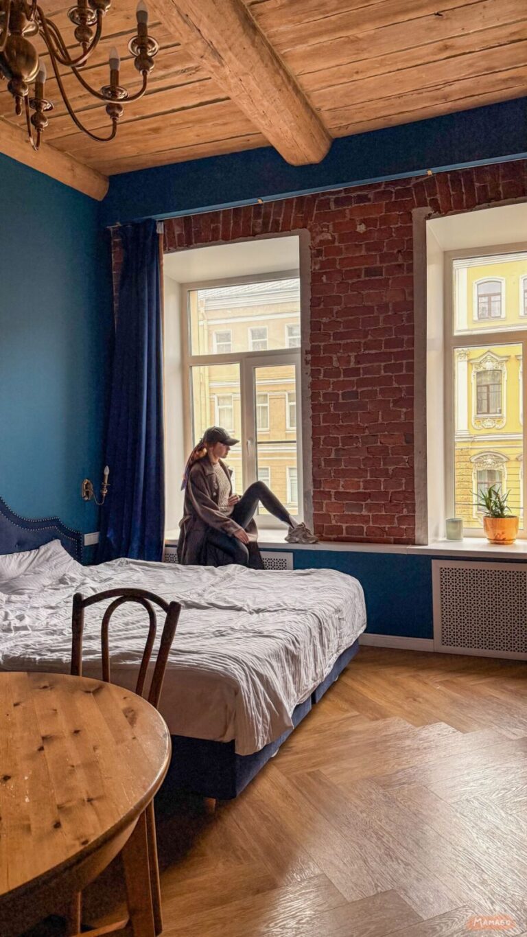 В Питер мы выехали в 6 утра и уже в 17:30 заселялись в «Морошку». Я пересмотрела много вариантов на Ostrovok.ru, но тут прямо очень понравился винтажный интерьер, а еще проектор в каждой комнате и такая характерная старинная мебель. Мы жили в номере 4 без балкона, но с очень красивой кухонной зоной из отреставрированного буфета прошлого столетия. Сам апарт-отель находится в тусовочном центре города недалеко от Невского проспекта, на 4-м этаже классического питерского дома с просторной парадной и состоит из 6 комнат. Тут есть общий утюг, зонты, зона отдыха с книжным шкафом, а в каждом номере — халаты, тапочки, сушилки для обуви, минимум посуды, одноразовые щетки, крем для тела и даже мицеллярная вода, масочки для лица и патчи. Приятности! А хозяин сам предложил нам поздний выезд и помог с парковкой во внутреннем дворе. Расположение «Морошки» тоже топовое: шагов мы находили много, но до любого места из маршрута прогуливались с удовольствием через достопримечательности, красивые виды и набережную.